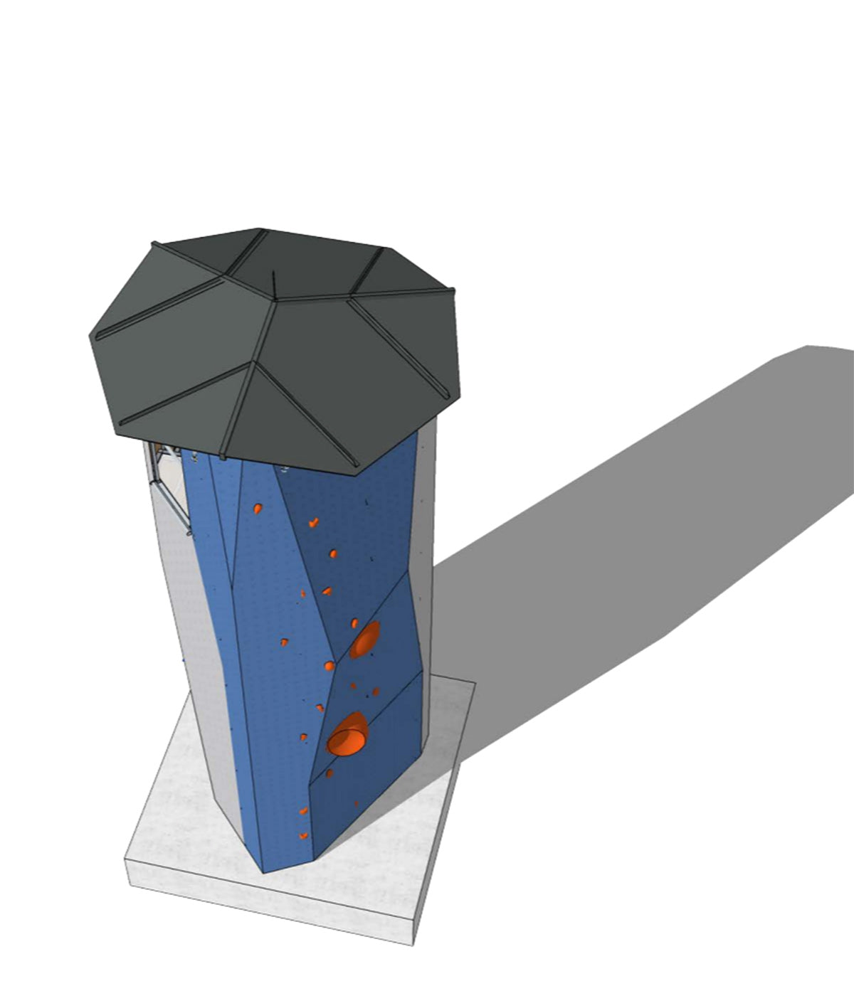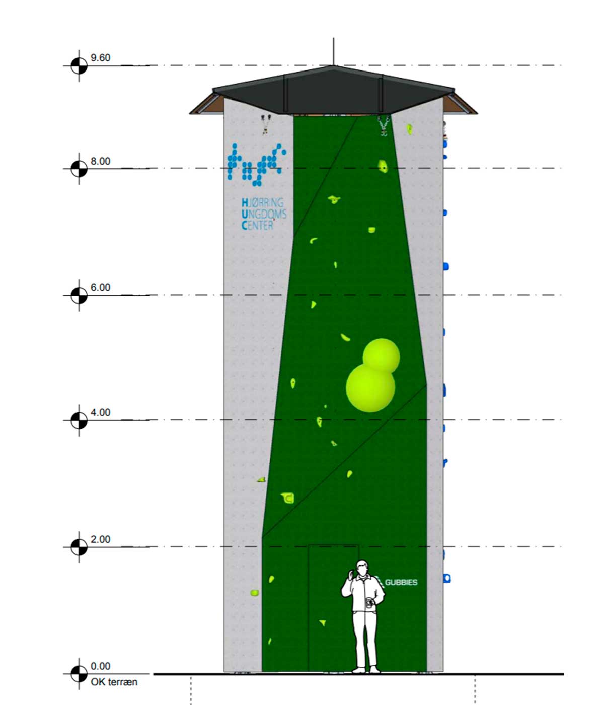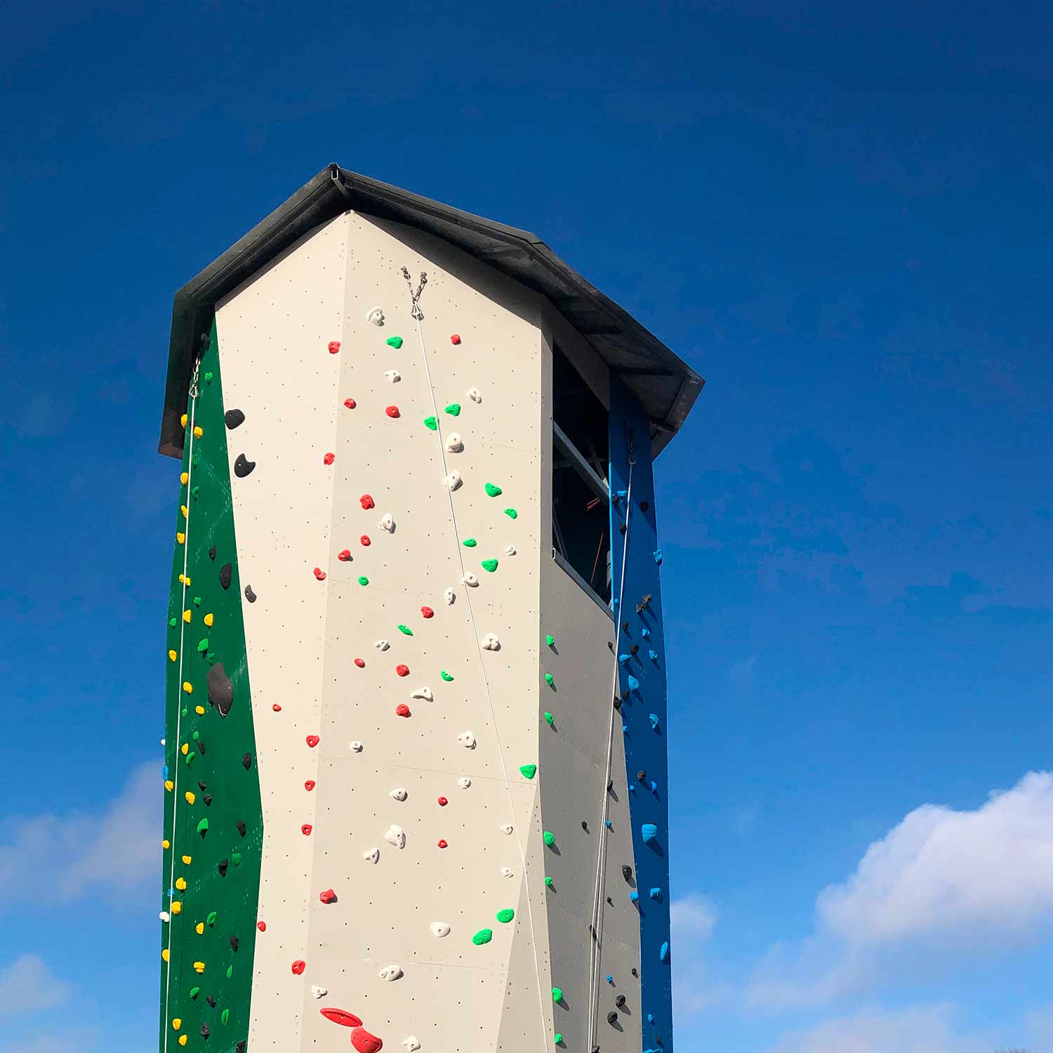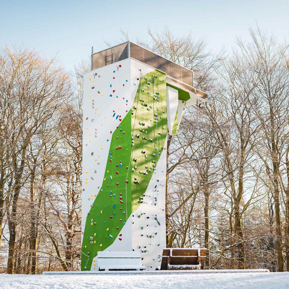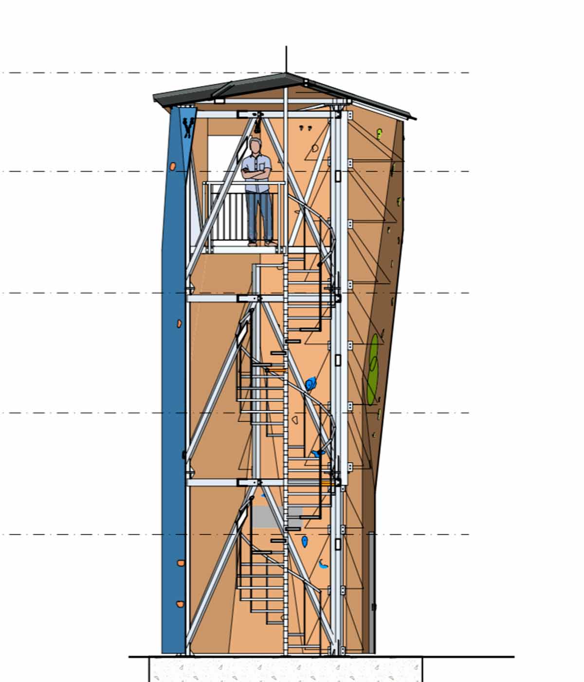 We consider the task of designing and developing climbing towers as one of the tasks where our conceptual ability and architectural expertise comes to full use. The task of making a climbing tower cannot be exclusively about climbing, as a significant climbing tower will define the entire area where it stands. With a climbing tower, you have the option of both top rope climbing and lead climbing at the same facility. Futhermore our climbing towers are designed so that you can go up a staircase inside the tower and from a platform at the top you can abseil.