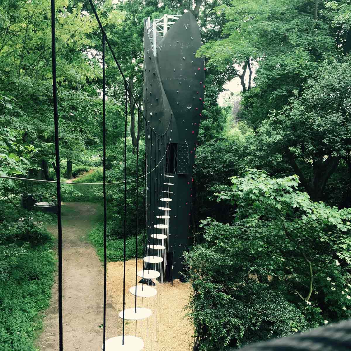 Climbing towers have a special ability to create social communities, as it gathers people around it, so to speak - while someone climbs, others can sit around the tower and enjoy the view and look forward to having to climb the wall themselves.