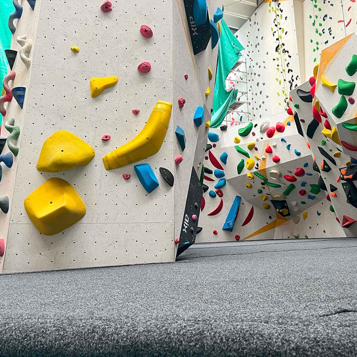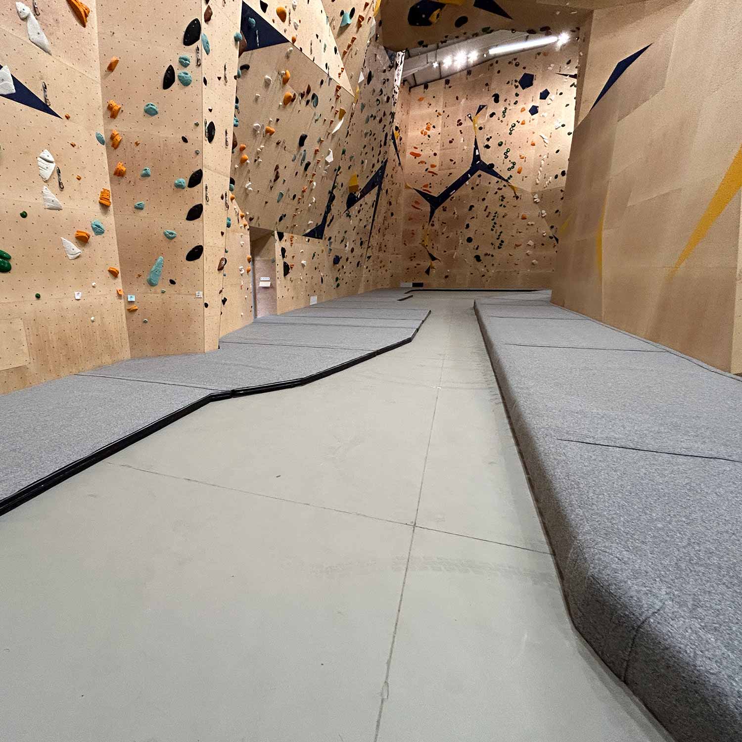 Fall protection mats or crash pads are used in connection with all climbing facilities. Especially during bouldering, the fall protection mat is a crucial safety factor. When we at Gubbies develop climbing walls, climbing towers, or bouldering walls, considerations about various options for fall protection are always an integral part of the project. If you need new climbing mats for existing climbing walls, we are also happy to create a customized solution for you.